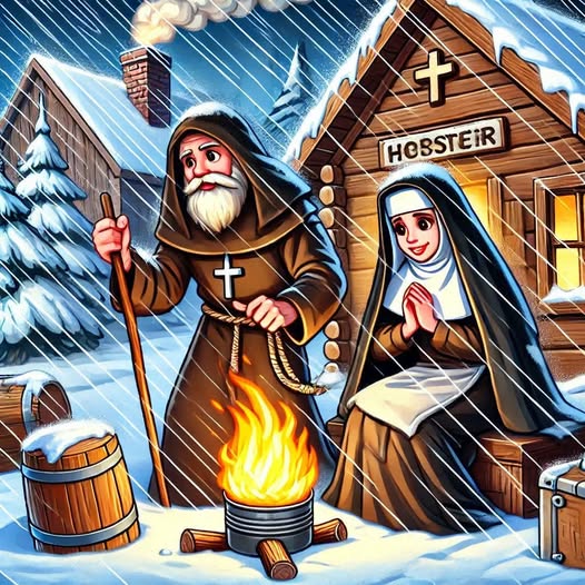 As they prepare for sleep, the nun shivers and calls out, “Father, Father, I’m cold!” The priest gets up, adds another blanket over her, and asks, “Is that better, Sister?” She nods and replies, “Yes, Father, much better.”