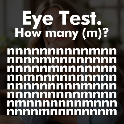 The picture is a simple visual puzzle: a block of letters that look almost identical at a glance. Nearly every character is “n”, but a few “m” letters are mixed in. Because m and n share the same shape, your brain tends to “auto-correct” them into one pattern when you scan quickly.