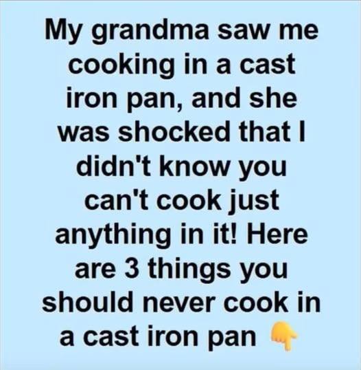 She explained that acidic foods — tomato sauces, citrus-heavy dishes — could eat away at the seasoning she’d built up over decades. Fragile fish could stick stubbornly, leaving behind flakes that were nearly impossible to remove without causing damage. And if you baked something sweet in a skillet seasoned almost entirely with savory meals? The flavors lingering in the iron would follow you right into the dessert. One careless choice, she said, could undo years of quiet effort and care.