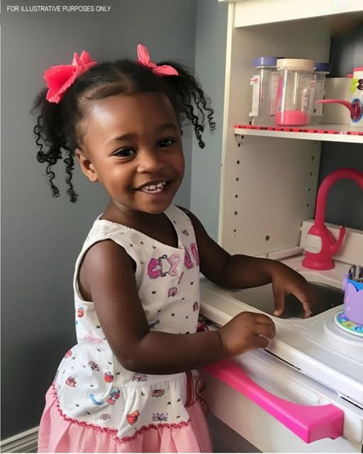 We want her to know what her body needs and choose foods that are good for it. To help her with this, we set up a cute little kitchen that only sort of works.