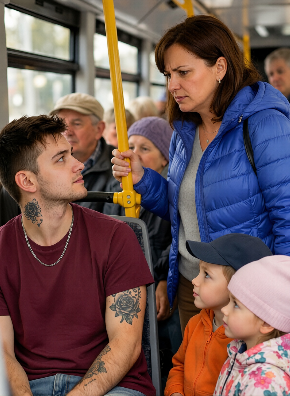 On the bus, a woman with two children started a scene and demanded that a young man give up his seat, but suddenly the man did something that made everyone else freezeĀ