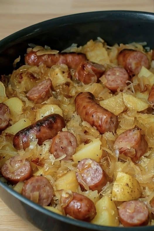 This Polish Sausage, Sauerkraut, and Potatoes dish is a timeless Eastern European comfort meal built on simple, filling ingredients. Cooking everything in layers allows the sauerkraut to act as a flavorful base that gently steams the potatoes, while the smoky Polish sausage releases its rich juices to season the entire dish. A touch of caraway seed brings a warm, earthy note that balances perfectly with the sauerkraut’s tang.